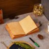 vintage handmade leather journal. Crafted with genuine leather, it radiates authenticity and charm, perfect for those who appreciate classic craftsmanship. The premium antique lock closure adds a touch of elegance and security, ensuring your thoughts and memories are safeguarded within its pages. Inside, you’ll discover 200 brown handmade pages, providing ample space for your musings, sketches, and stories to unfold. Whether it’s for journaling, sketching, or planning, this versatile journal is a timeless companion for your creative endeavors. Treat yourself or a loved one to this exquisite piece, a celebration of tradition and creativity
